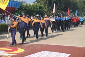जनपद/वाहिनी की टीमों द्वारा मार्च पास कर मुख्य अतिथि को सलामी दी तत्पचात मेजबान टीम के कैप्टेन द्वारा सभी खिलाड़ियों को खेल भावना के साथ प्रतिभाग करने की शपथ दिलाई।