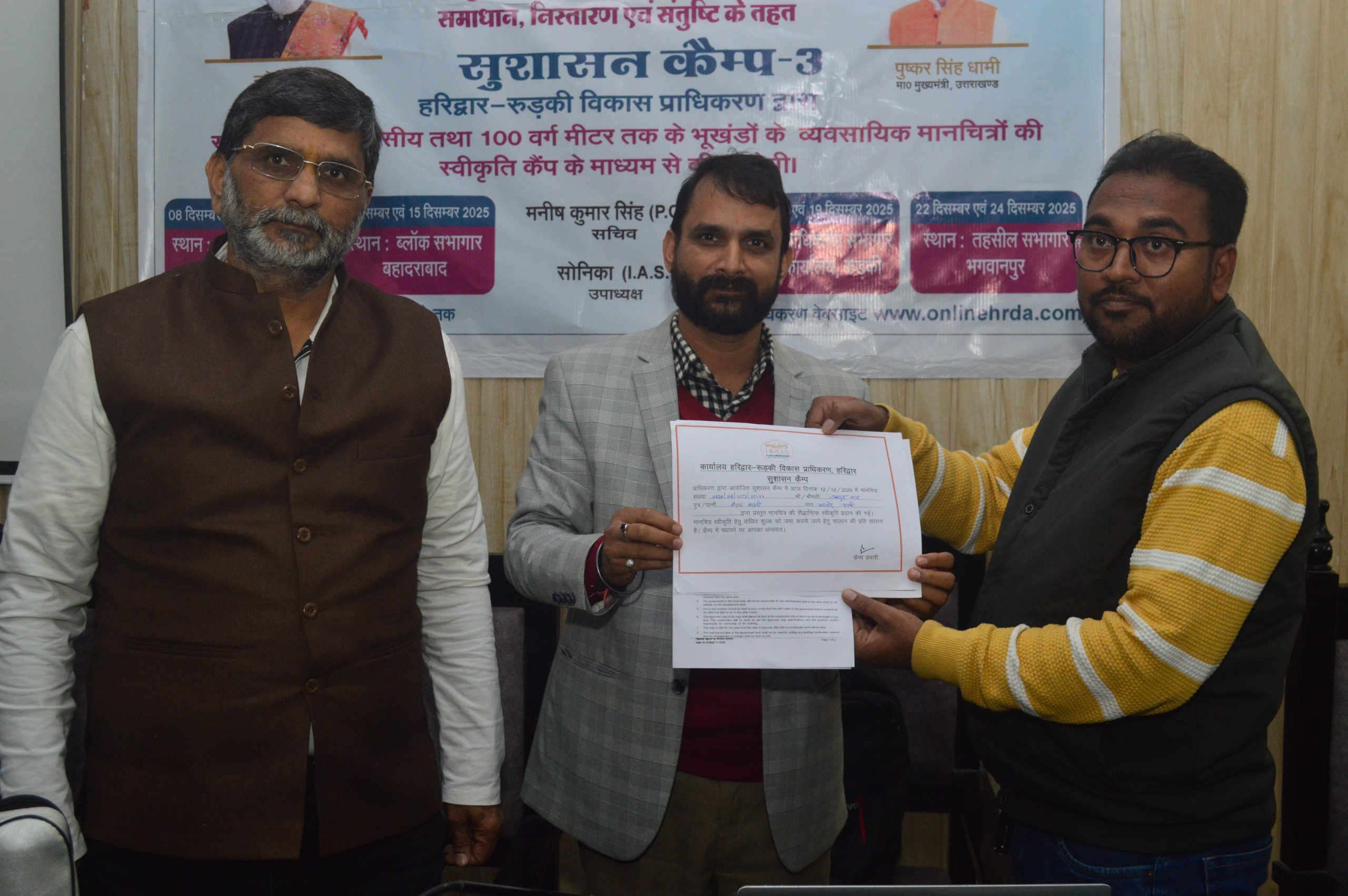 उत्तराखंड मुख्यमंत्री श्री पुष्कर सिंह धामी के सरलीकरण, समाधान, निस्तारण एवं संतुष्टि के मंत्र को आगे बढ़ाते हुए हरिद्वार–रुड़की विकास प्राधिकरण (HRDA) द्वारा आज सुशासन कैंप का सफल आयोजन ब्लॉक सभागार बहादराबाद हरिद्वार में किया गया। इससे पूर्व भी दो सुशासन कैंप आयोजित किए जा चुके हैं।