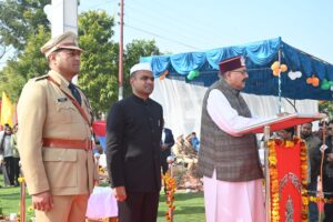 हरिद्वार 77वें गणतंत्र दिवस के अवसर पर आज पुलिस लाइन रोशनाबाद हरिद्वार स्थित परेड़ ग्राउंड में शानदार कार्यक्रम आयोजित किया गया। उक्त अवसर पर पुलिस लाइन कैम्पस एवं आसपास के क्षेत्र से आए लोगों के बीच वरिष्ठ पुलिस अधीक्षक हरिद्वार प्रमेंद्र सिंह डोबाल (IPS) द्वारा पुष्पगुच्छ देकर कार्यक्रम के मुख्य अतिथि पर्यटन, सांस्कृतिक व सिंचाई मंत्री (प्रभारी मंत्री जनपद हरिद्वार) श्री सतपाल महाराज जी का स्वागत किया गया।